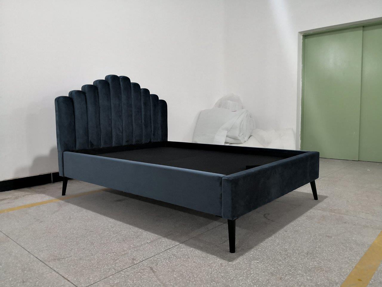 Raglan Double Blue Velvet Bed